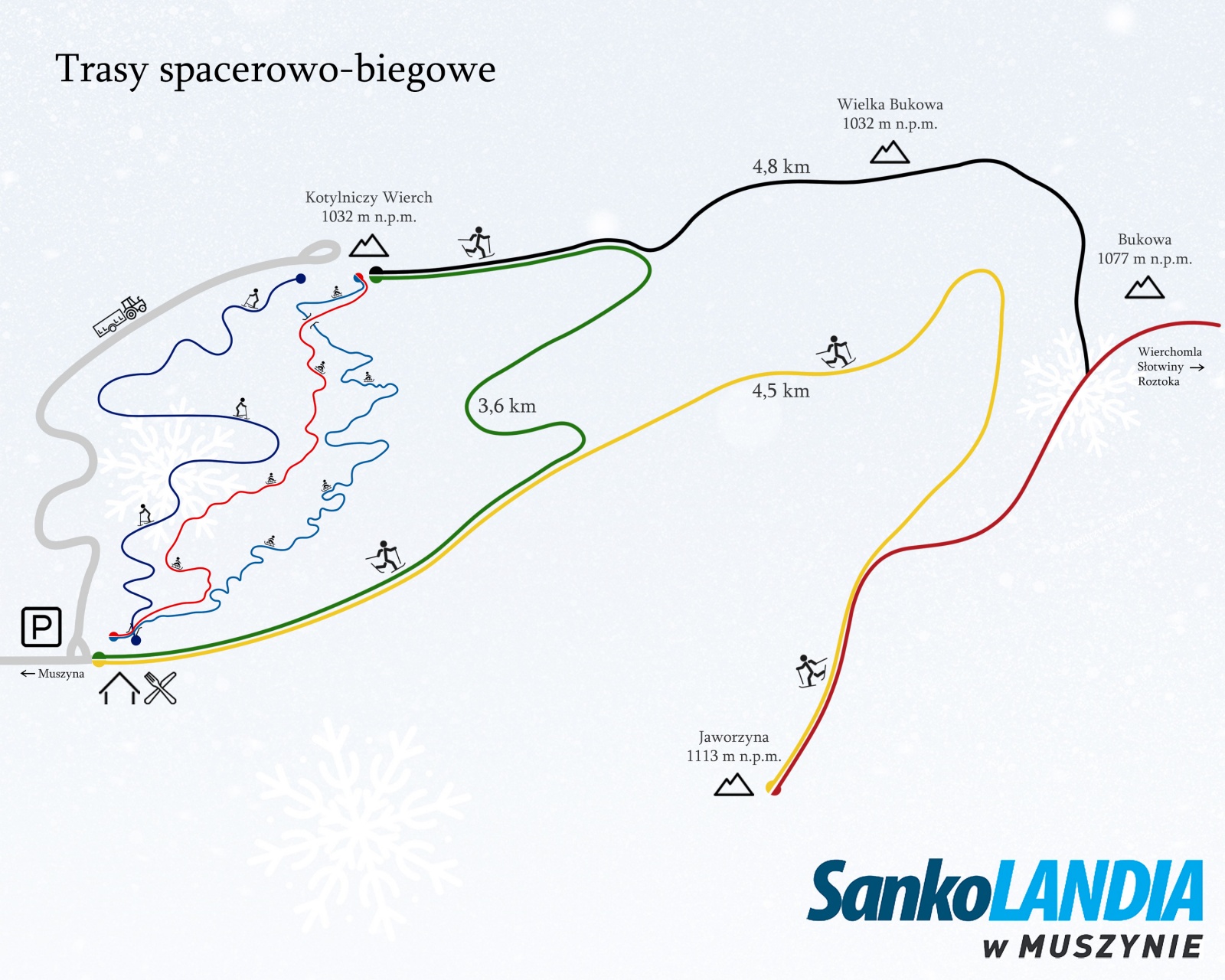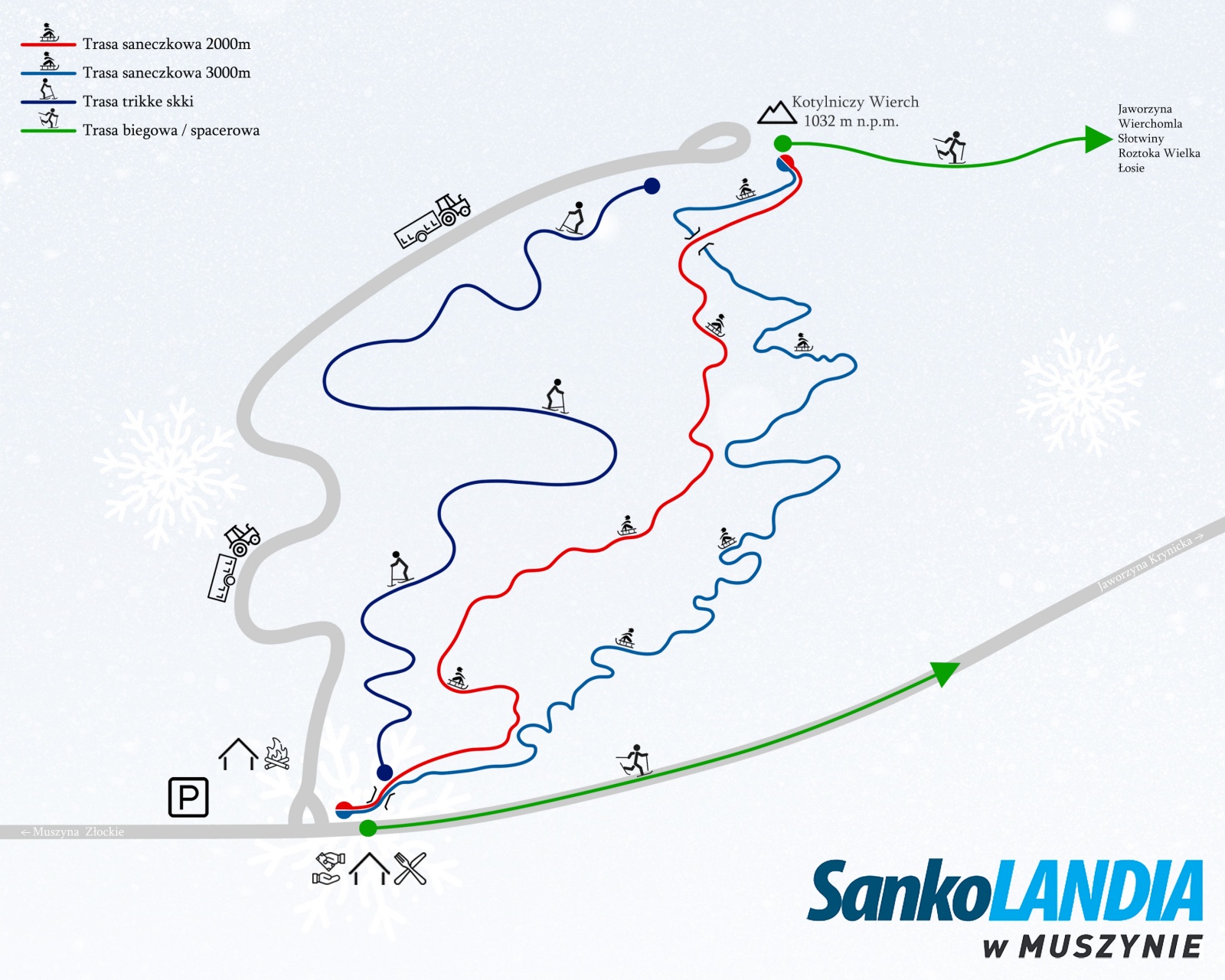 Trasy spacerowo biegoweNajlepsze trasy saneczkowe to nie wszystko. Z Sankolandii prowadzi ponad 10 km doskonale przygotowanych, ratrakowanych tras, które łączą to miejsce z malowniczą Jaworzyną Krynicką i urokliwą wsią Łosie. Trasy te są idealne na wycieczki piesze grzbietami gór, zapewniając niezapomniane widoki i kontakt z naturą. Są także rajem dla narciarzy biegowych, którzy cenią sobie świetne warunki, oraz dla miłośników skiturów, szukających przygody w sercu Beskidu Sądeckiego. Ten wyjątkowy region to doskonały wybór dla osób pragnących aktywnego wypoczynku w otoczeniu dziewiczej przyrody, o każdej porze roku. Zapraszamy do odkrywania uroków Sankolandii i jej okolic!